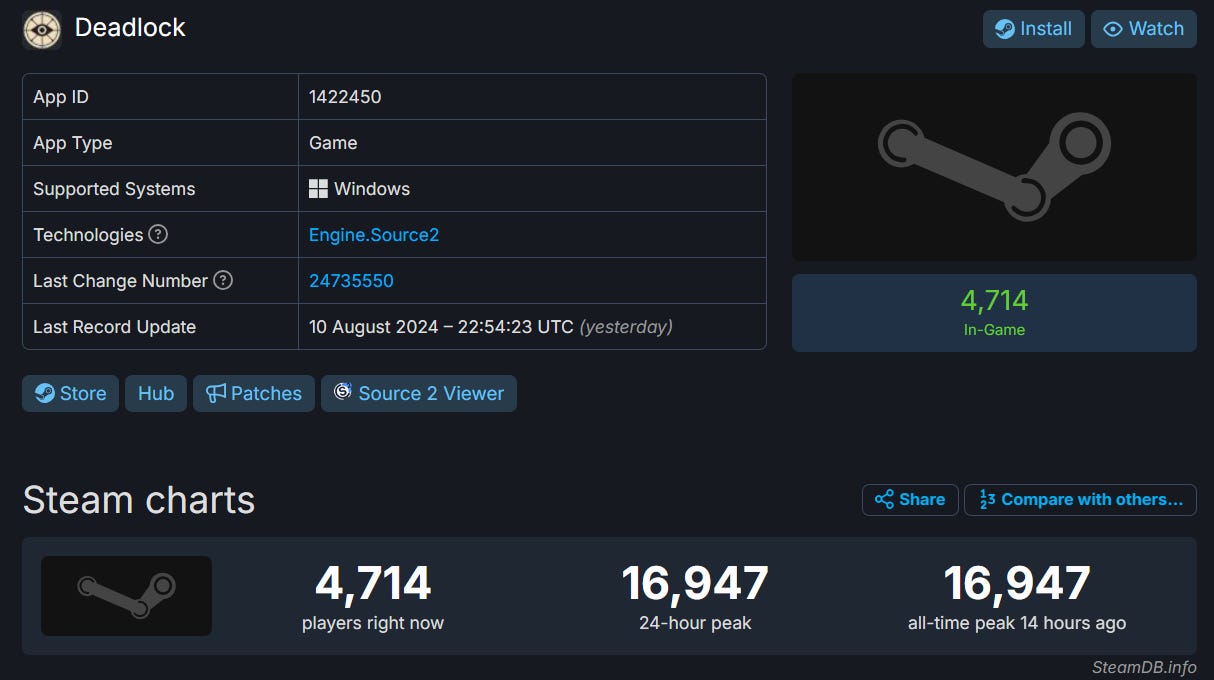 Valve hero shooter Deadlock still hasn't been announced, but had 16k Steam concurrent players this weekend